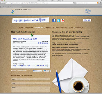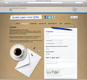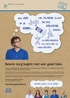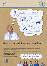 Meneer Creëer bedacht en realiseerde in opdracht van Provincie Flevoland een uitnodigende campagne, waarbij gezocht werd naar ideëen die de zorg verbeteren.