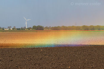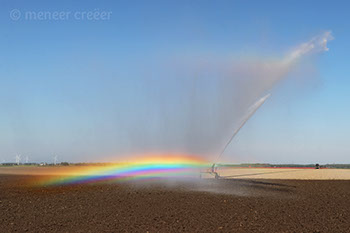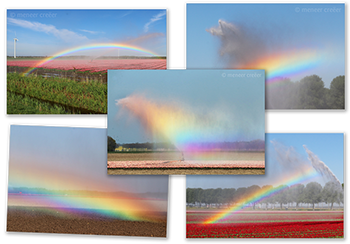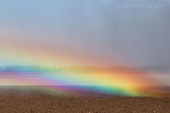Meneer Creëer woont in de Flevolandse polder waar hij ontdekte dat bij de sproeiers op het land, onder een bepaalde combinatie van omstandigheden (invalshoek zonlicht, standpunt fotograaf, etc), er prachtige mini-regenbogen tevoorschijn kwamen. De regenboogjacht was daarmee geopend...
